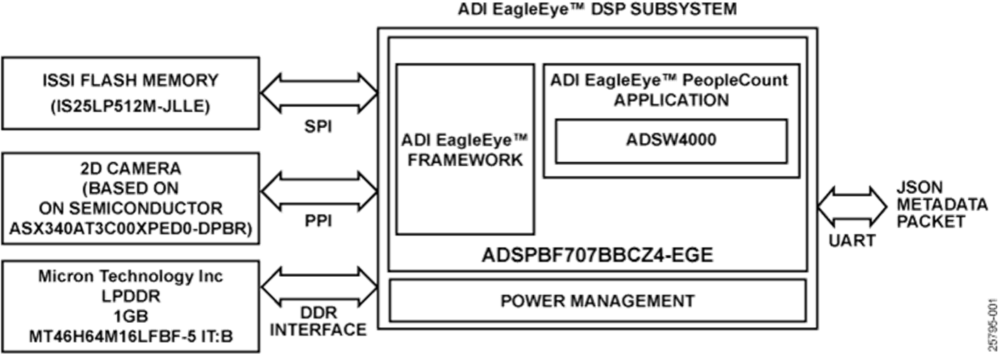 The ADI EagleEye platform includes a hardware subsystem based on the company’s Blackfin embedded digital signal processor (DSP) and a set of application-level software building blocks, which enable designers to develop their own people-counting systems. The ADSW4000 algorithm includes system edge node analytics that provides insights to improve space utilization, people safety through distance monitoring, and energy efficiency in intelligent buildings.