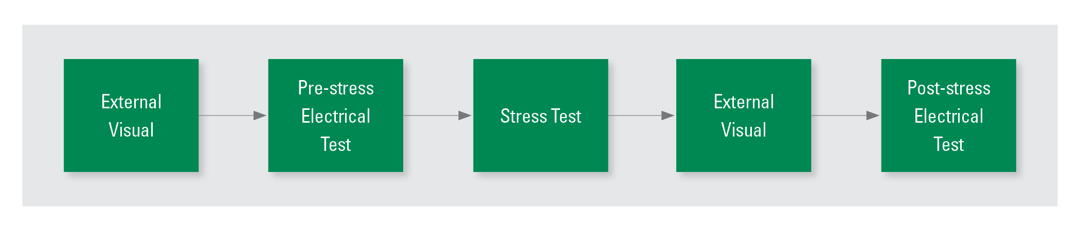 There are two main stress categories that components must pass: environmental stresses, such as temperature cycling and humidity bias, and physical characteristic stresses, such as machinal shock and vibration. It is important to note that not all stresses apply to a particular technology.