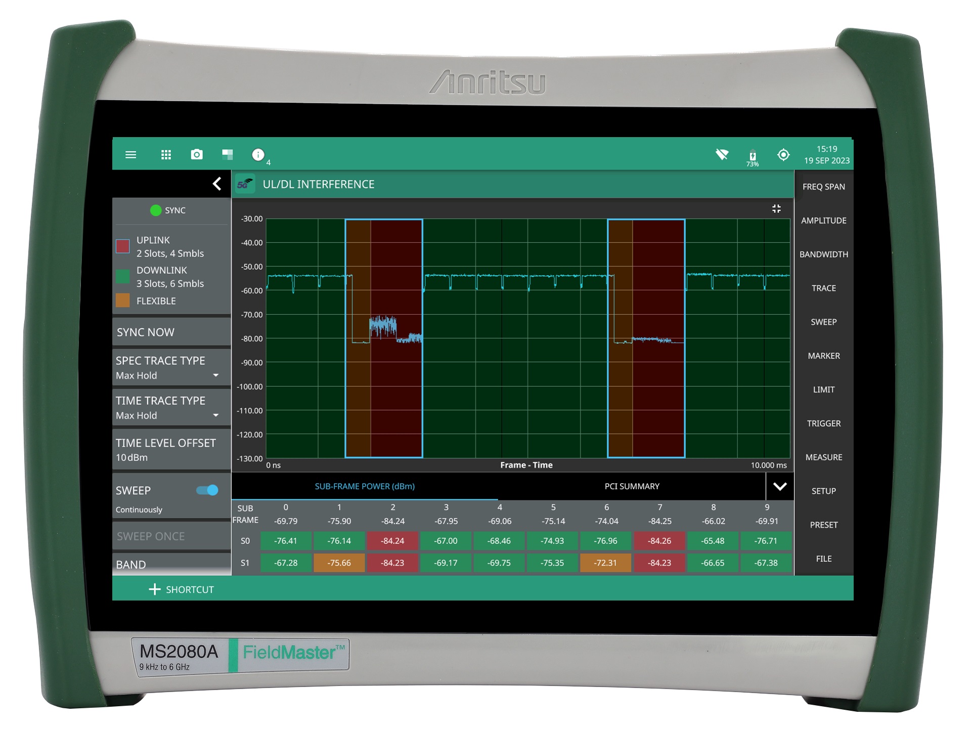 Providing detailed insights into the causes of interference in new TDD networks, the uplink interference measurement includes configurations for common frame slot formats recommended by international standards organizations such as GSMA, ITU-R and ECC/CEPT. The LTE and 5G base-station measurement options support the performance of essential measurement when installing or optimizing a network.