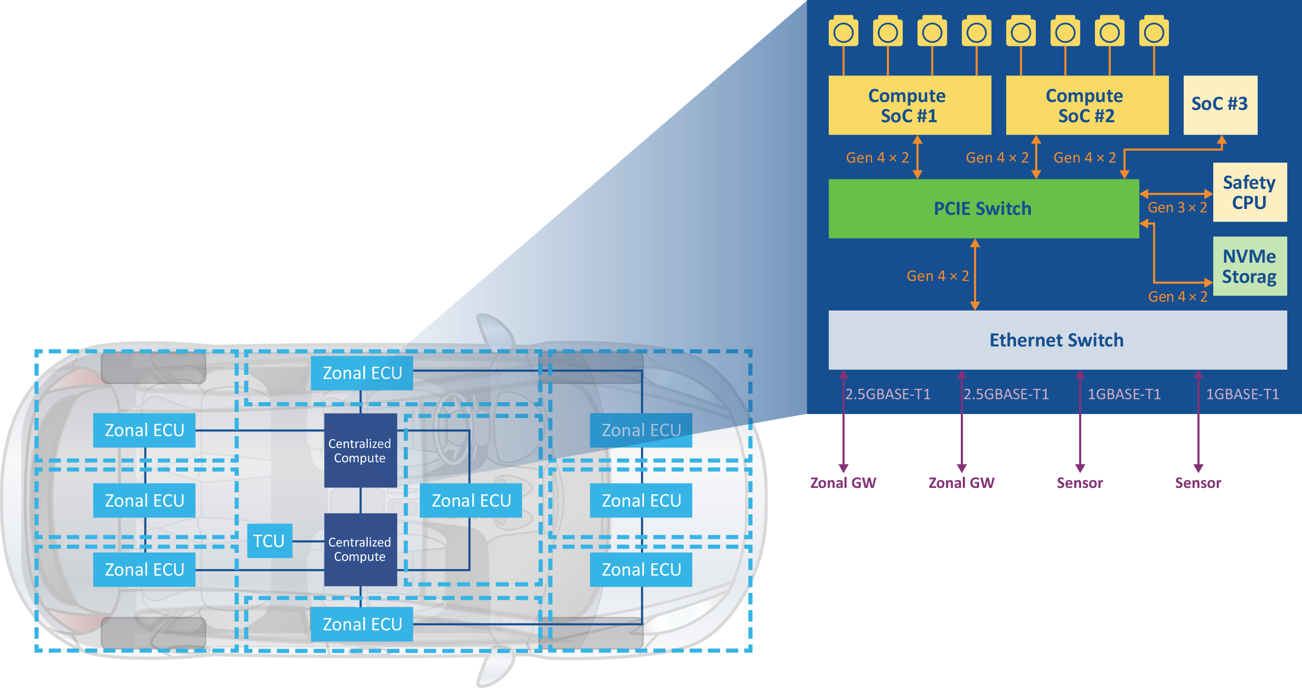 This rapid expansion of ECUs has been driven by growing demand for vehicle performance and feature innovations, but it generates an astounding increase in software code—as much as 7× that of a commercial airliner—that needs to be distributed throughout the vehicle. The architecture that has been used to accomplish this is not particularly energy-efficient, nor is it compute-efficient, as most ECUs perform a single task and cannot be upgraded.