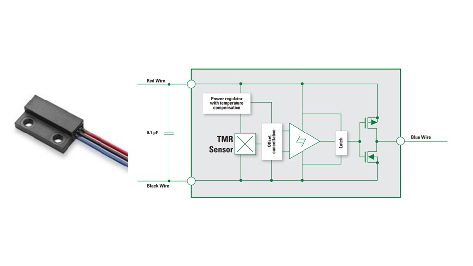 Ensure that fluid levels are at appropriate levels and that lids or chambers are correctly closed for the safe operation of the appliance. One level and proximity detection solution is a tunneling magnetoresistance (TMR) sensor. Figure 5 shows a TMR sensor with an active power drive. TMR sensors offer the benefits of excellent sensitivity, 17 G and ultra-low power consumption, drawing only 1.5 µA at supply voltages from 1.8 to 5.5 V. TMR sensors have an exceptionally long life of up to 20 billion cycles. The sensor also has an environmental rating of IP67 against ingress from moisture and dirt.