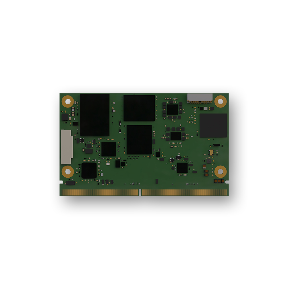 The SOM offers high-quality visual experiences with three simultaneous displays, driven by three DDI interfaces (supporting DP 1.4 and HDMI) and one eDP 1.4 or single/dual-channel LVDS interface (factory alternatives). Connectivity options include 1× NBase-T Ethernet interface with a MaxLinear GPY211/215 GbE controller, supporting 2.5 GbE and TSN; 2× USB 10 Gbits/s, 3× USB 5 Gbits/s, 8× Hi-Speed USB, 6× PCI-e lanes Gen3, 2× S-ATA Gen3 channels and several serial interfaces. OS support includes Microsoft Windows 10 IoT Enterprise and Edgehog OS (Yocto).