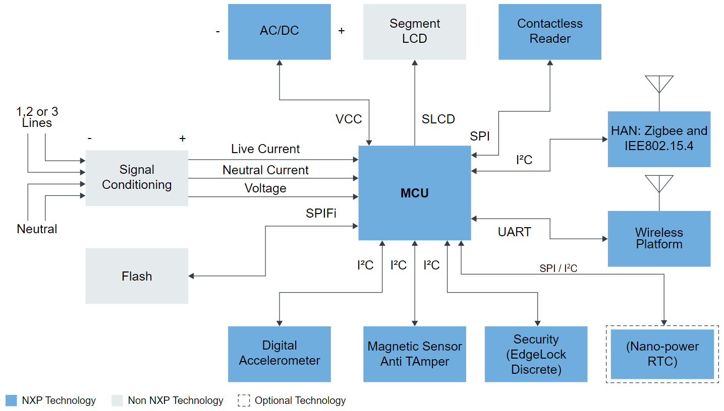 Figure 1: Electricity meter block diagram. Click for a larger image. (Source: NXP Semiconductors)
