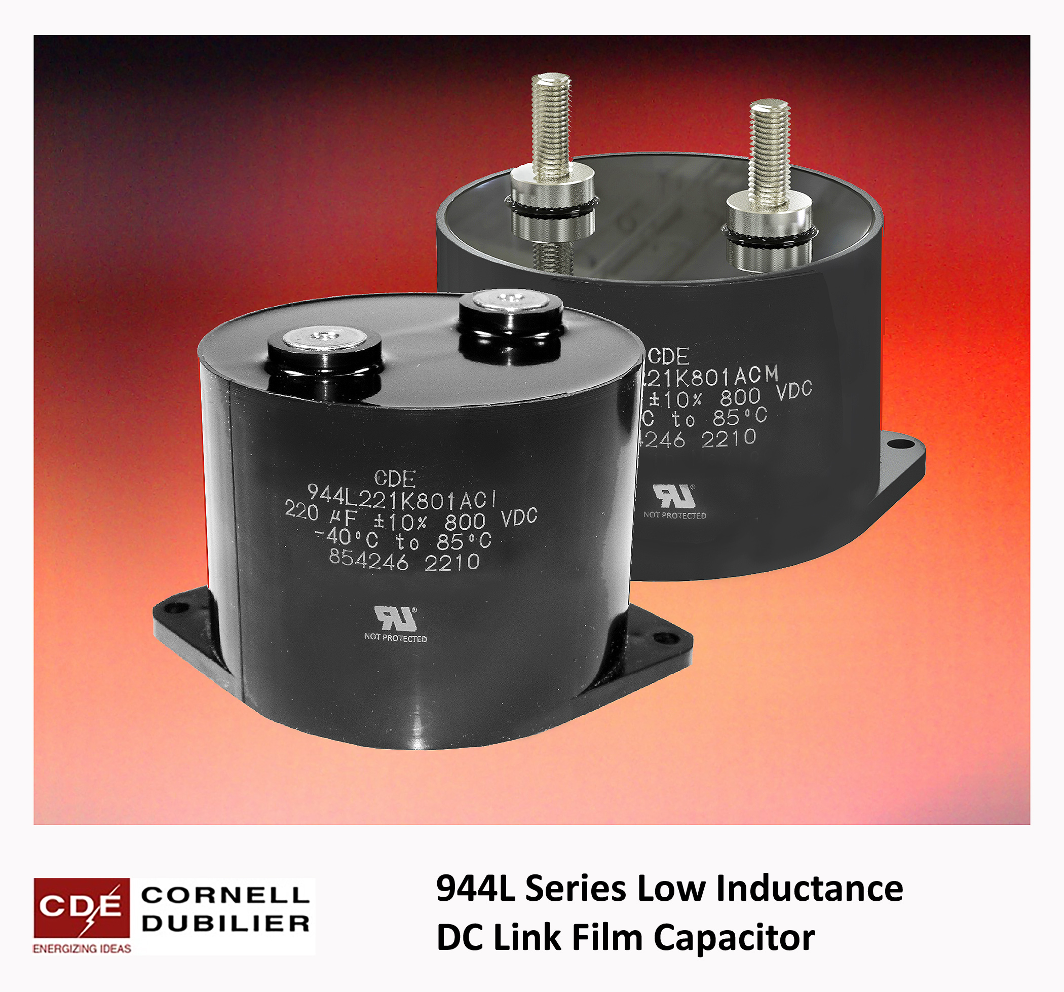 One example is the new 944L series of high-current DC-link film capacitors from Cornell Dubilier Electronics, Inc. These capacitors can be used in Level 3 EV chargers as well as green energy inverter systems. These applications call for power converters that deliver more power in a smaller footprint.