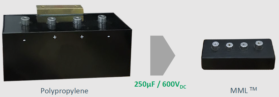 The company calls the MML capacitors a game changer with an energy density of 400 J/dm3. This allows for a tremendous reduction in size and weight compared to traditional polypropylene or polyester dielectrics, said Exxelia. The technology also offers an increased operating temperature up to 140°C and transient voltage protection.