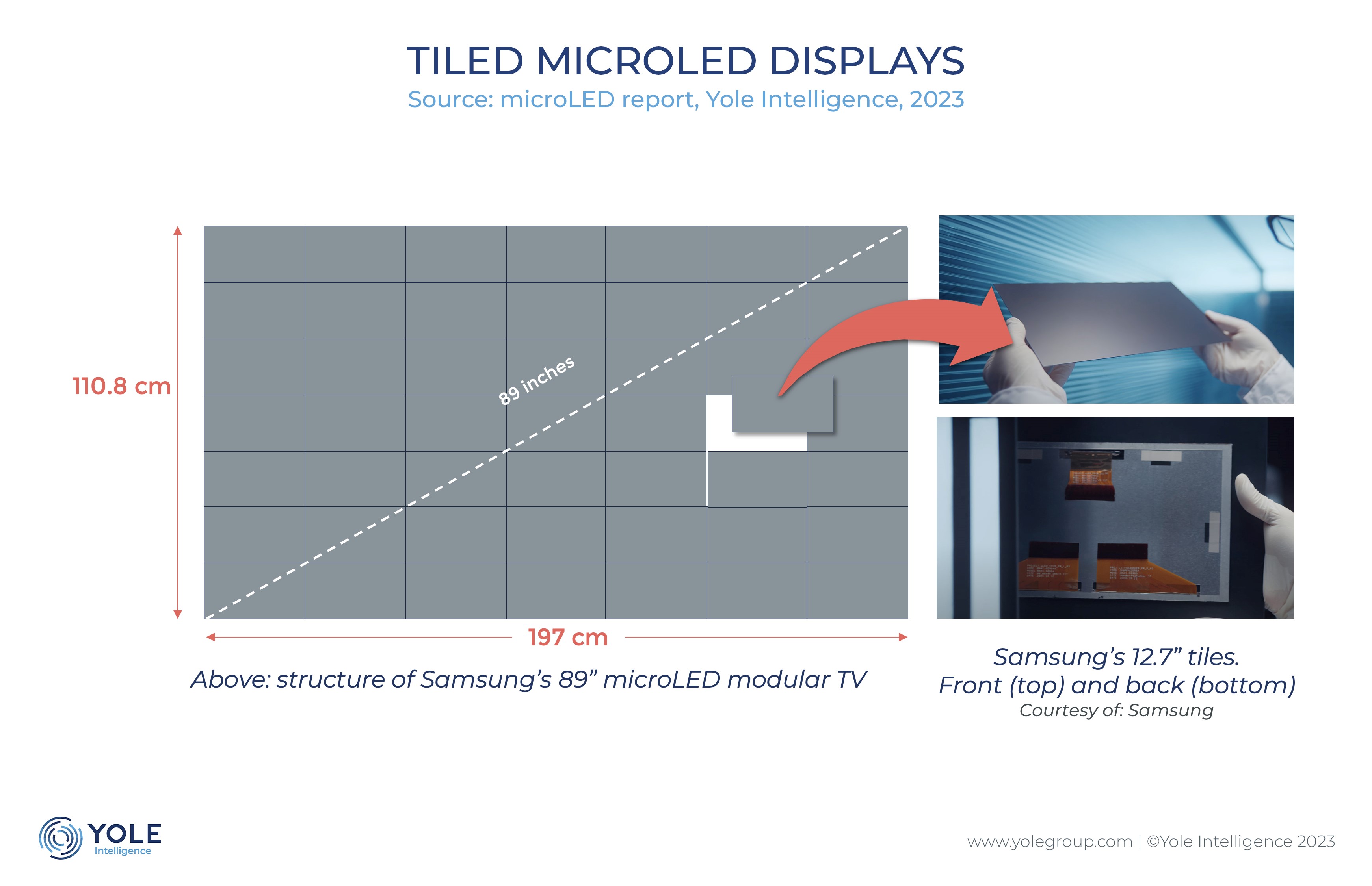 Samsung leverages the microLEDs’ capability to build bezel-free modules or tiles in its 89-inch TV. (Source: Yole Group)