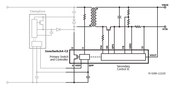 The InnoSwitch4-CZ and ClampZero combination provides up to 95% efficiency and maintains very high efficiency across variations in line voltage, system load, and output voltage in comparison with older active clamp flyback approaches, said the company. This is thanks to variable frequency asymmetrical control of the active clamp with intelligent ZVS, which enables both discontinuous and continuous conduction modes of operation.