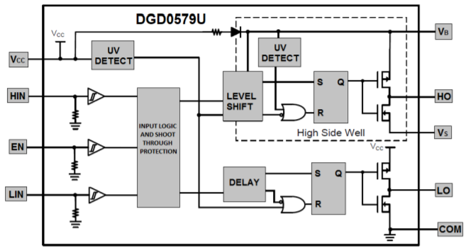 The DGD0579U features an enable pin for power management and ultra-low (<1 μA) standby current that is said to help deliver longer battery run times. It is also compatible with control signals from microcontrollers and PWM controller ICs, supporting TTL and CMOS logic level inputs (down to 3.3 V).