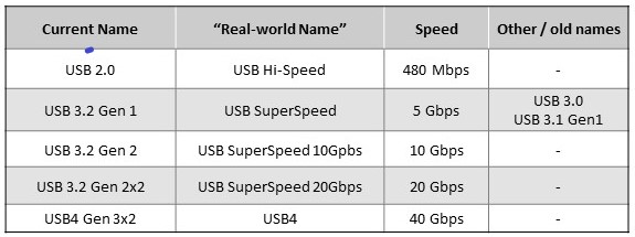 Table 1. Evolution of USB standards showing increases in data transmission rates. (Source: Littelfuse, Inc.)
