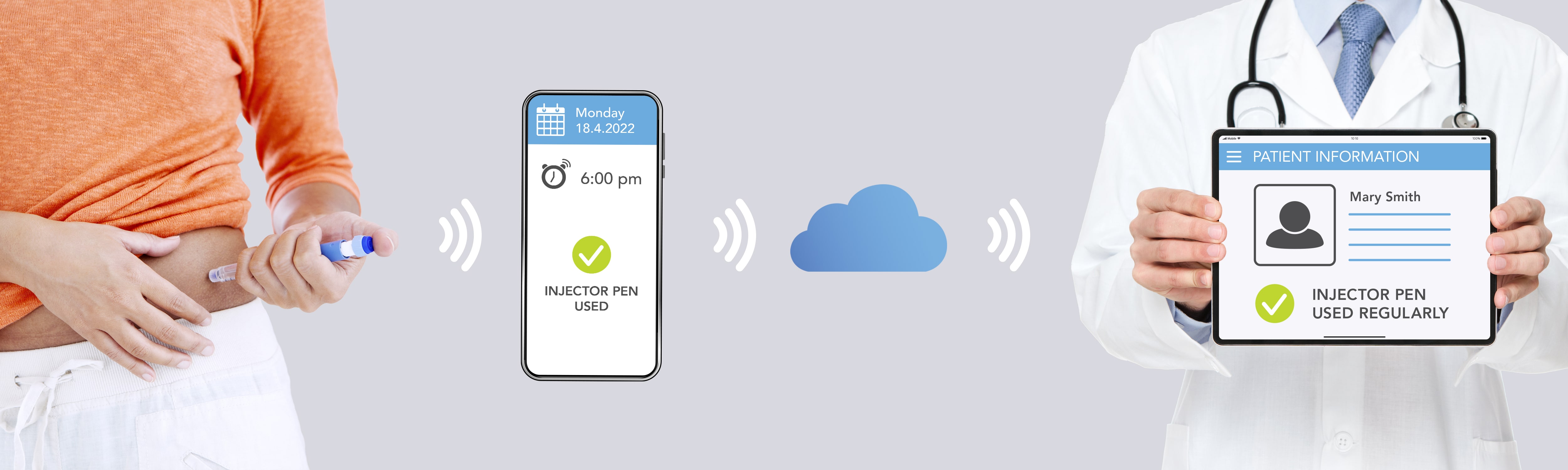 The data storage capacity, reliable security features and augmented functionalities like condition sensing of these advanced NFC tags ensure reliable real-time transmission of critical health information. For instance, healthcare professionals can instantly access a patient’s medication and treatment data, drilling down to dosage levels and administration times. This data is captured automatically via hospital equipment, such as a smart infusion pump, which is connected to a network. In a home setting, the patient’s smart injector, for example, interacts with an NFC-enabled phone to transfer the data onward to a physician’s cloud service.