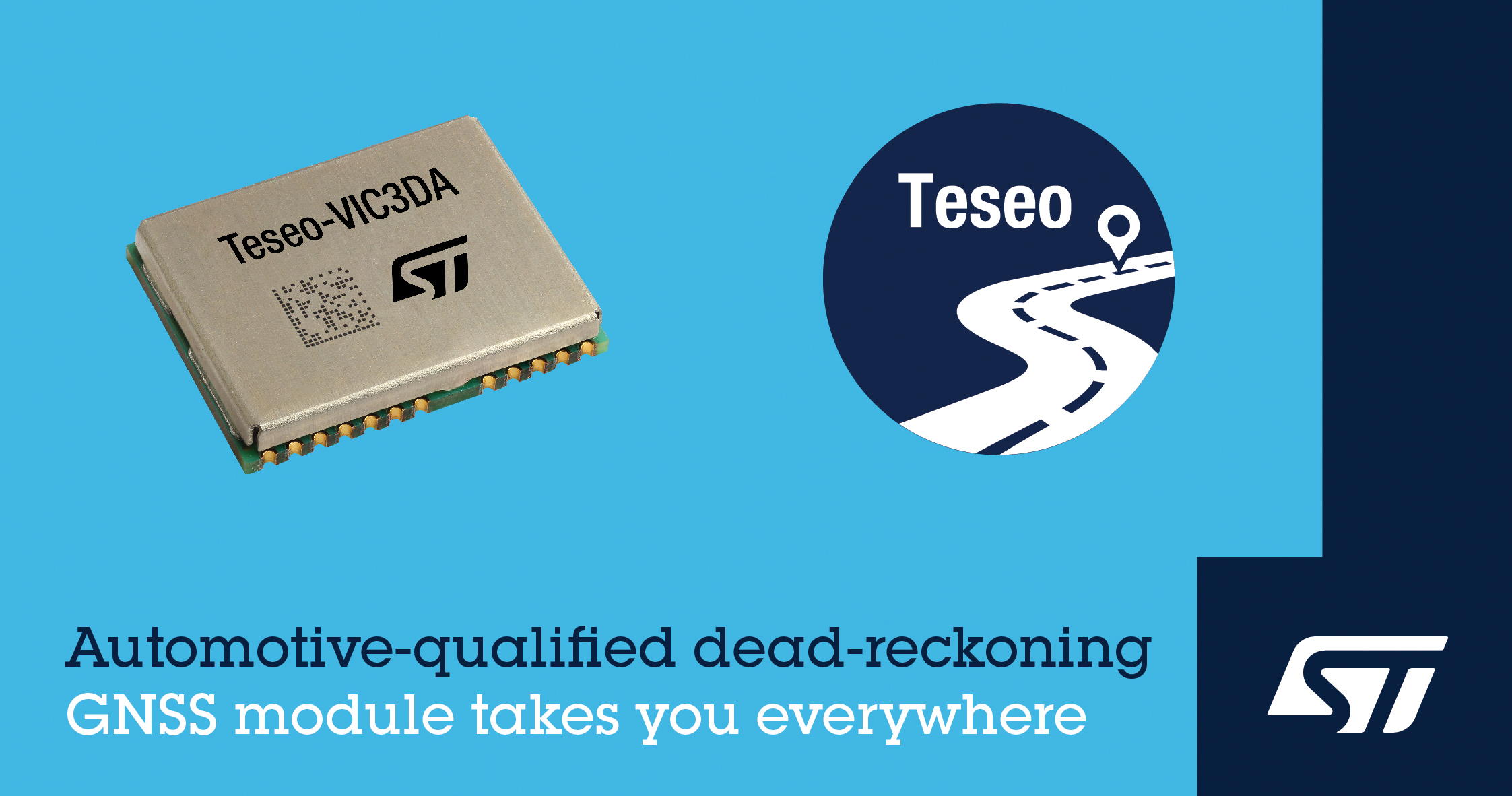 The Teseo-VIC3DA, supplied in a 16.0 × 12.2 × 2.42-mm 24-pin LCC package, is in production now. Budgetary pricing is from $12.70 per 1,000 pieces. ST also offers a USB-powered evaluation platform, EVB-VIC3DA, for development.