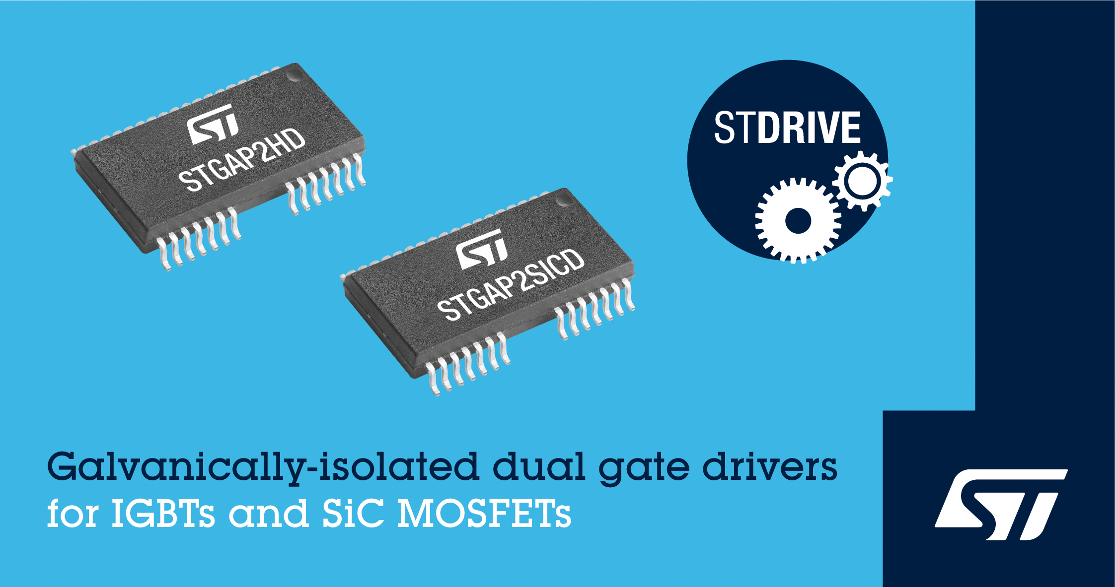 STMicroelectronics’ new dual gate drivers are designed to optimize and simplify SiC and IGBT switching circuits. The STGAP2HD for IGBTs and STGAP2SICD for SiC MOSFETs are built on ST’s latest galvanic-isolation technology to provide 6-kV transient-voltage capability in a SO-36W wide-body package, while the ±100 V/ns dv/dt transient immunity prevents spurious turn-on in electrically noisy operating conditions. The devices can deliver a gate-control signal of up to 4 A, with dual output pins for extra flexibility in gate driving, which enables independent adjustment of turn-on and turn-off times. The active Miller clamp prevents gate spikes during fast commutation in half-bridge topologies and circuit protection features include thermal protection, a watchdog for safe operation, and under-voltage lockout (UVLO) per channel. Available in production, the dual gate drivers are priced from $1.84 for orders of 1000 pieces. Demo boards also are available: EVALSTGAP2HDM and EVALSTGAP2SICD.