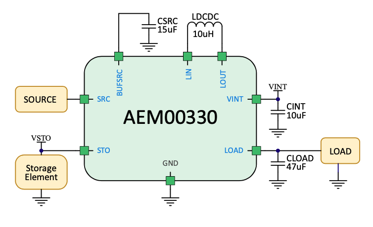 The AEM00330 is a full power management chip, while the AEM00300 is a storage element charger. Both devices are self-configurable, with the ability to automatically switch between buck, buck-boost, and boost operation. This enables faster adjustments with different sources, storage, and load arrangements (step-up, step-down, etc.), while maximizing their energy transfer capabilities, said e-peas.