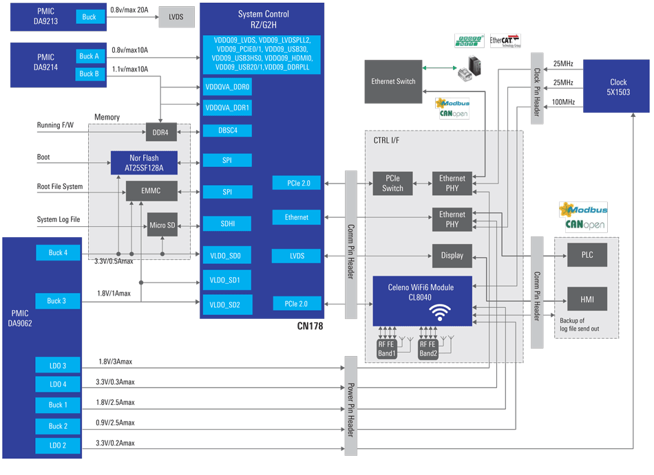 Industrial Gateway with Wi-Fi 6 block diagram. Click for a larger image. (Source: Renesas Electronics)