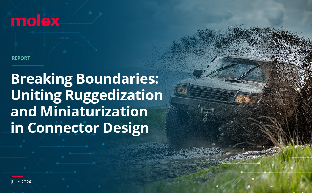 The report, “Breaking Boundaries: Uniting Ruggedization and Miniaturization in Connector Design,” looks at connector trends, industry requirements and design innovations. Molex defines “miniature connectors” as having a pitch of 2.54 mm or less, while “ruggedness” refers to features for withstanding the harshest environments and mechanical stresses.
