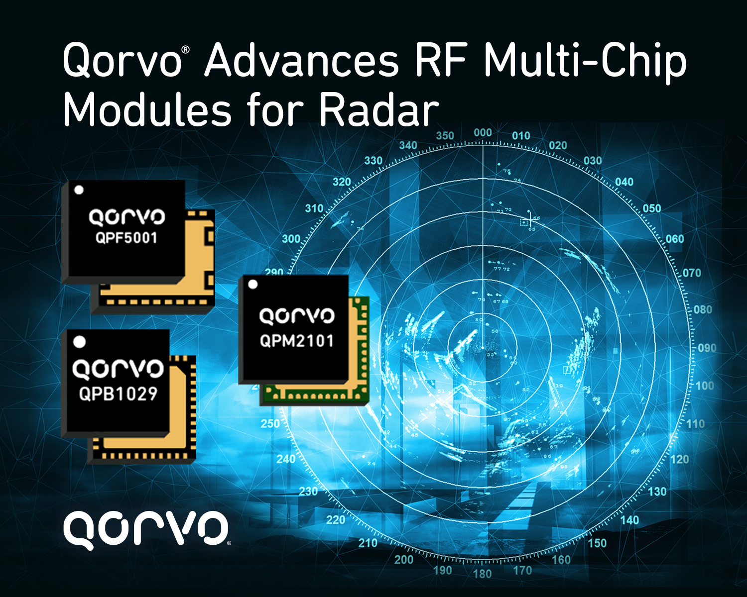 Qorvo, Inc. has launched three new highly integrated RF multi-chip modules (MCMs) designed for advanced radar applications. Leveraging Qorvo’s advanced packaging and process technology, the QPF5001, QPM2101 and QP1029 devices offer a compact size and high performance as well as lower noise and reduced power consumption required for phased array and multifunction radar systems.