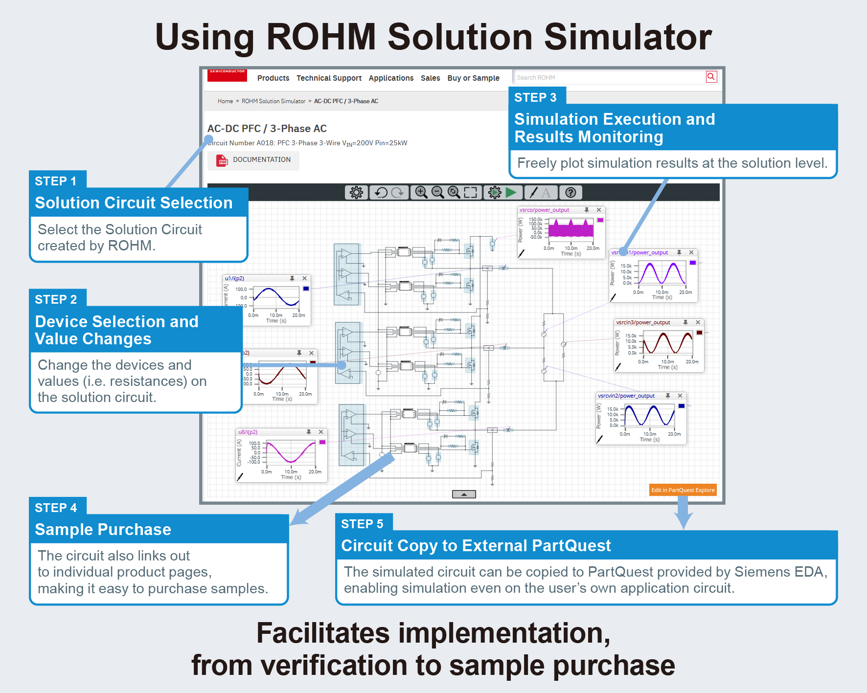 The tool also allows simulation data to be transferred to a user’s PartQuest development environment. The Rohm simulator is based on the PartQuest simulation platform from Siemens EDA, enabling PartQuest users to incorporate simulation data executed in Rohm’s Solution Simulator into their own environment.