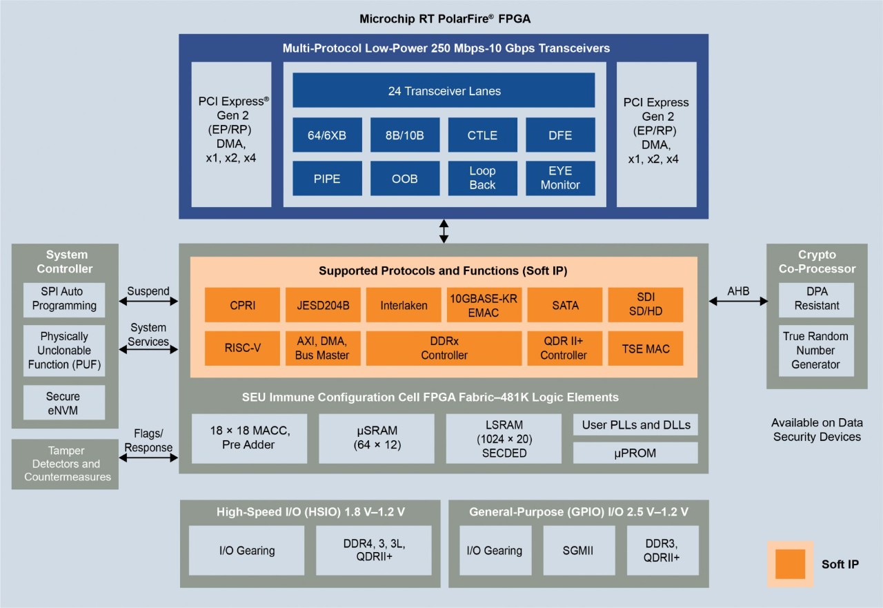 The RT PolarFire FPGAs can be paired with one or more complementary Microchip solutions in spaceflight systems, including its Ethernet PHY VSC8541RT, CAN interface USB-to-UART PHYs, clocks and oscillators, and power solutions.