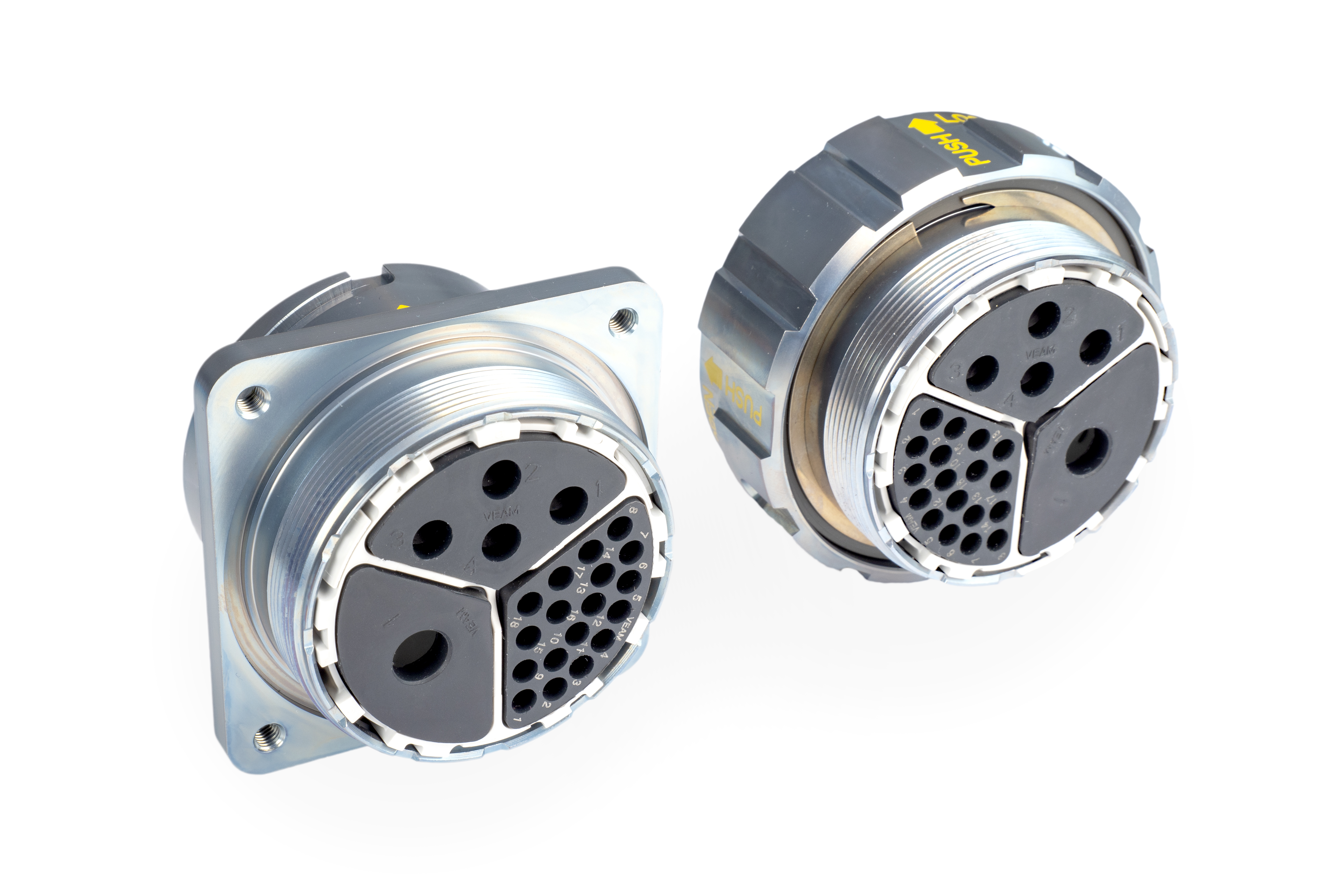 The bayonet coupling with secondary locking and the circular form factor is said to minimize weight and footprint size, and offers a condensed footprint compared to standard rectangular connector equivalents.