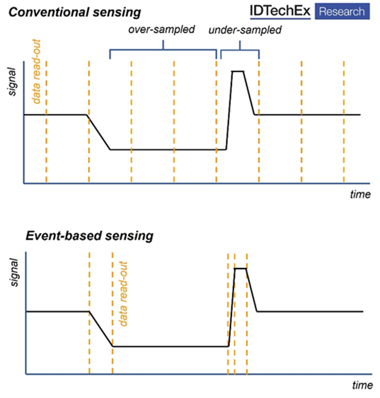 Figure 2: Event-based image sensing improves processing efficiency by only responding to signal-intensity changes. (Source: IDTechEx)