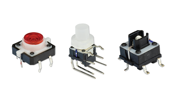 The single pole/single throw (SPST) illuminated tactile switches are available in surface-mount or through-hole mounting styles, PC pin or gull wing terminations. They are also available in vertical or right-angle orientations.