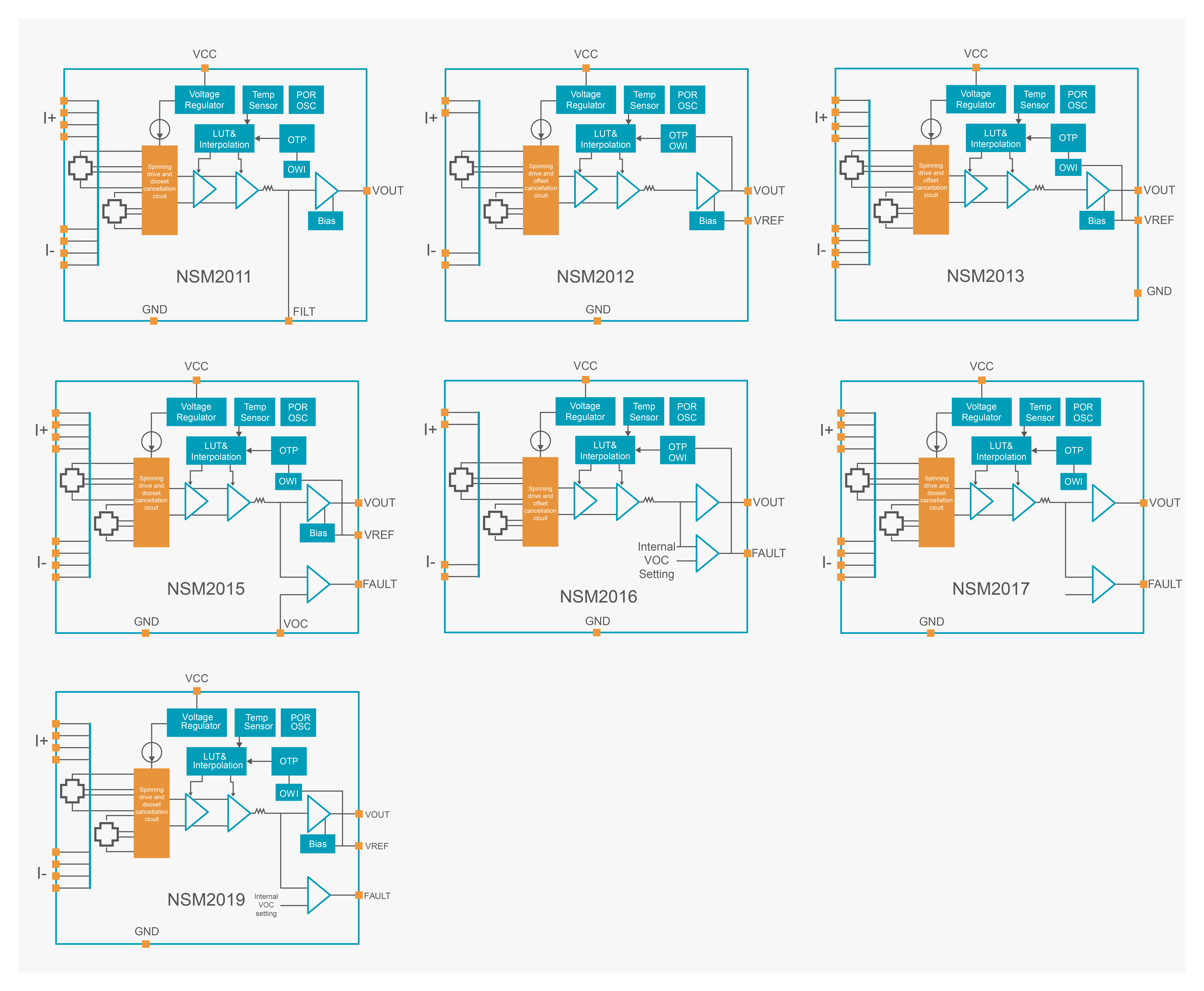 Functional block diagrams of the Novosense NSM201x series (Source: Novosense Microelectronics)