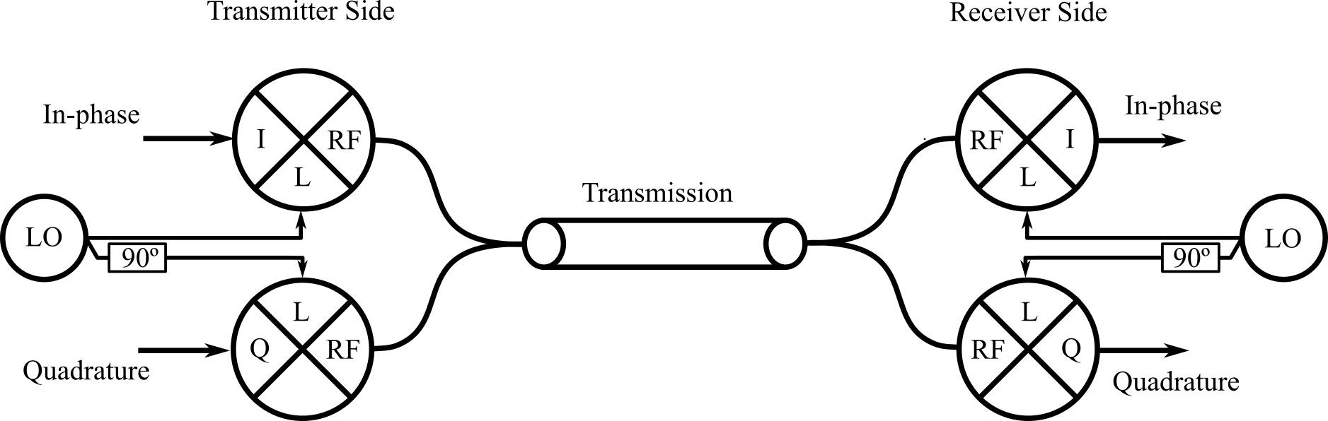 Figure 3: IQ mixer showing the transmission between the transmitter and receiver sides (Source: Per Vices)
