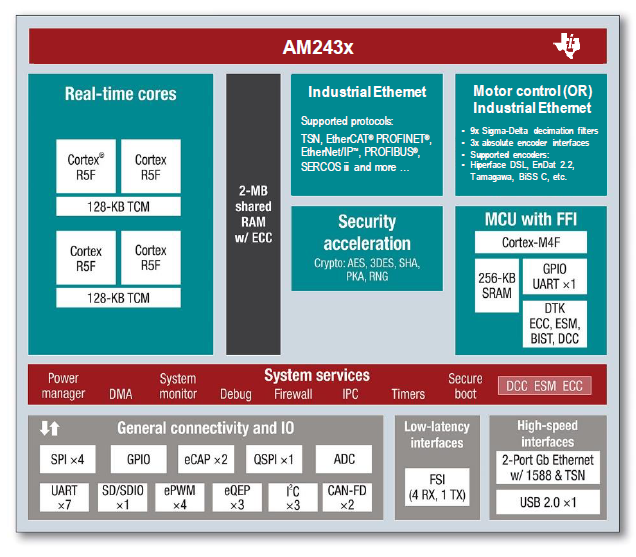 The family of AM2x MCUs is able to achieve higher levels of processing, control, and networking requirements thanks to four key features – high-performance processing, integration of peripherals, hardware accelerators, and on-chip security.