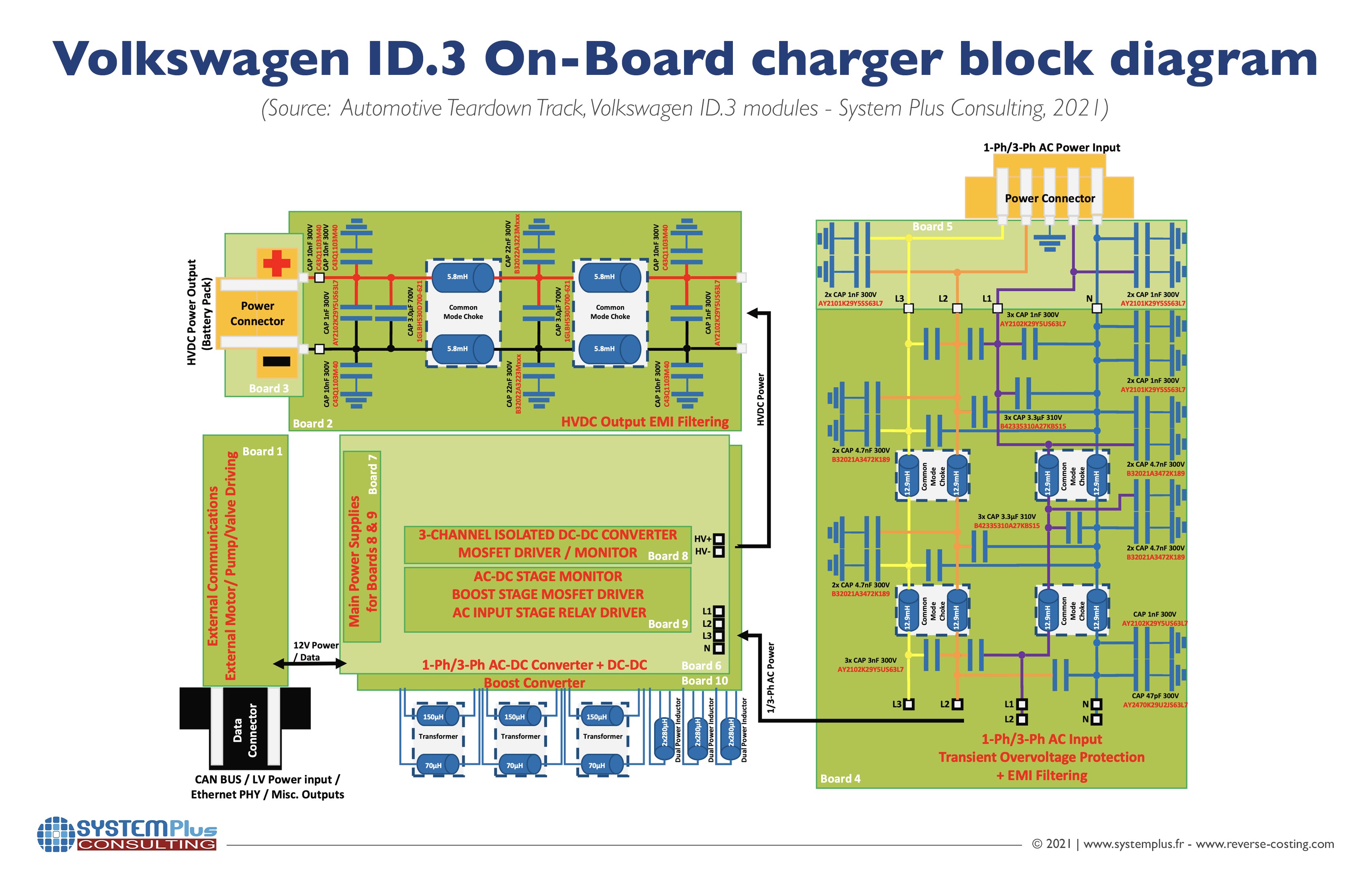 Figure 9: Block diagram of on-board charger. Click the image above to enlarge (Source: System Plus Consulting)