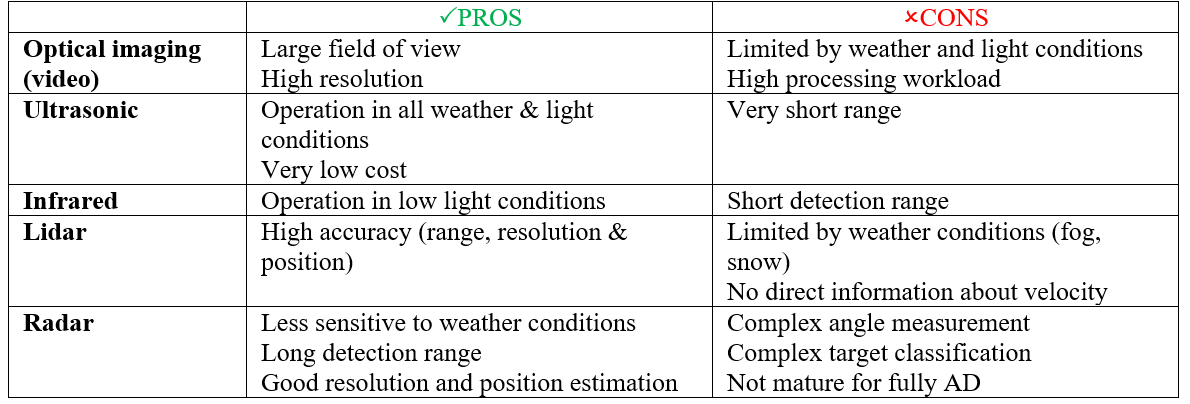 Full AD will most likely require the fusion of data obtained from different sensing technologies. With sensors distributed around the car, it will be possible to provide full 360˚ coverage, creating a safety “cocoon” around the car.