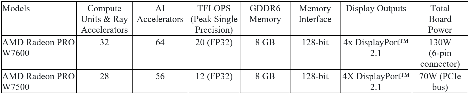 The Radeon PRO W7000 Series workstation graphics cards are available from leading etailers/retailers. Product availability in OEM workstations and SI systems is expected to begin later this year. Suggested retail pricing for the Radeon PRO W7600 and Radeon PRO W7500 graphics cards is $599 and $429, respectively.