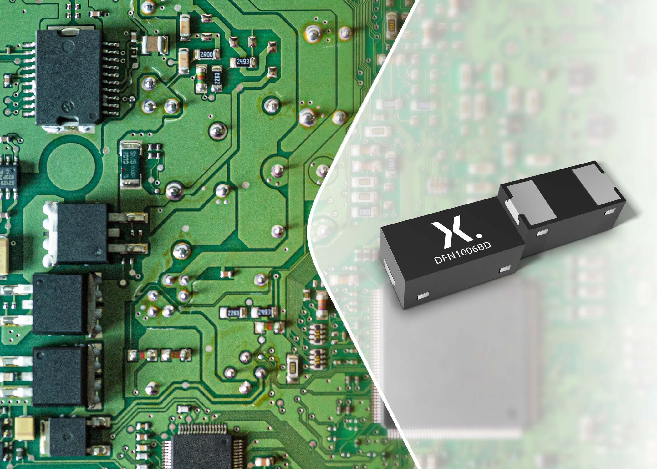The DFN package with dimensions of 1.0 × 0.6 × 0.47 mm can be used to replace leaded packages, saving up to 60% in PCB space, said Nexperia. It features side-wettable flanks (SWF), which ensure the solder flows up the side of the chip when it is soldered onto the PCB. This facilitates automated optical inspection (AOI), which meets the automotive industry’s high safety, reliability and quality requirements, said the company.